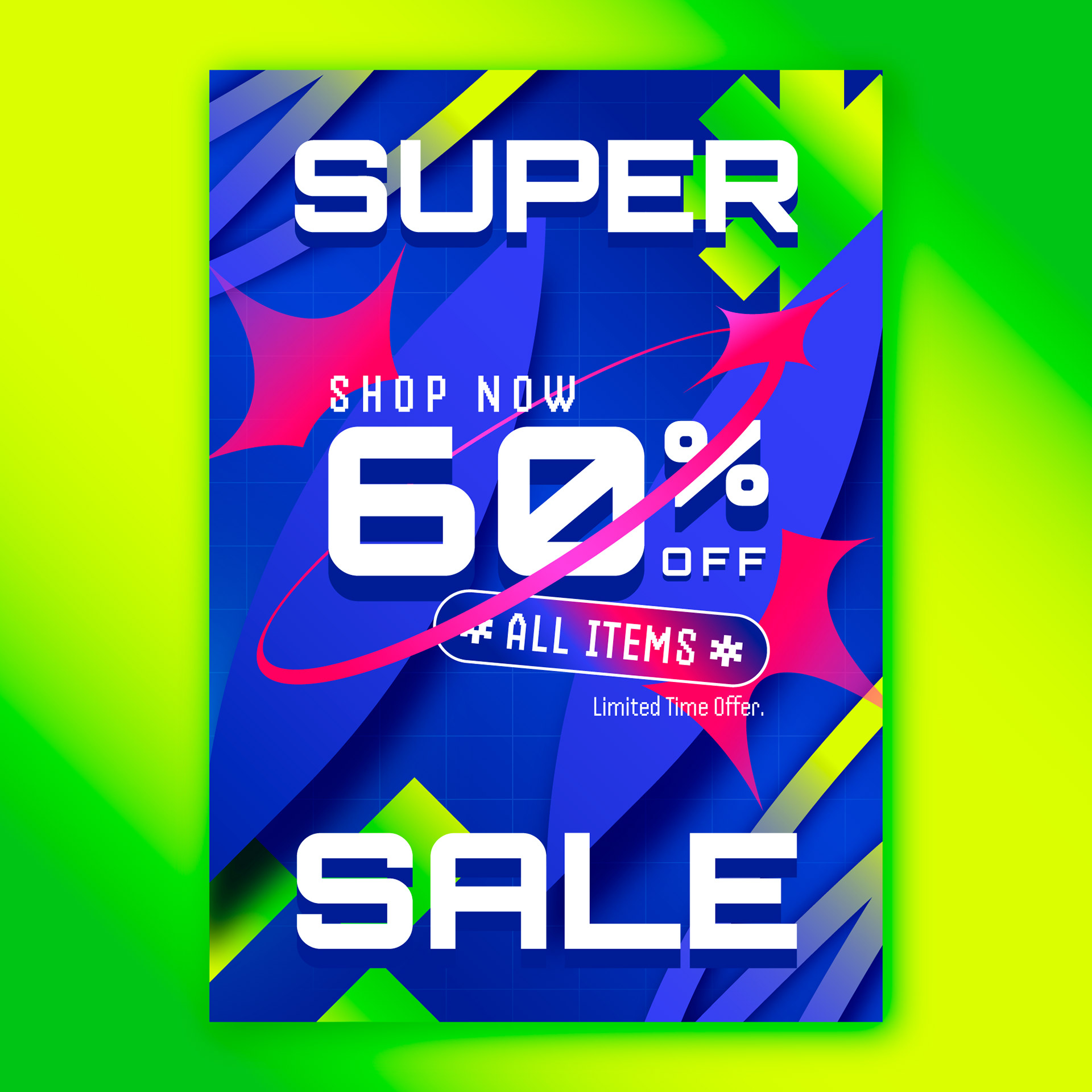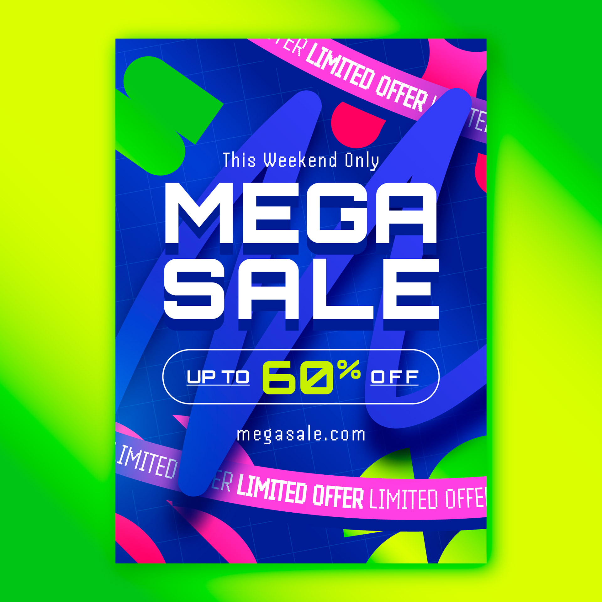 The final poster delivers a bold, trend-driven asset that expands Freepik’s retail offering. It clearly differentiates itself from traditional sale templates, while its modular structure allows users to easily adjust discounts and URLs without disrupting the overall composition. The design successfully translates the urgency of a flash sale into a visual experience that feels more like a digital event than a standard promotion.
