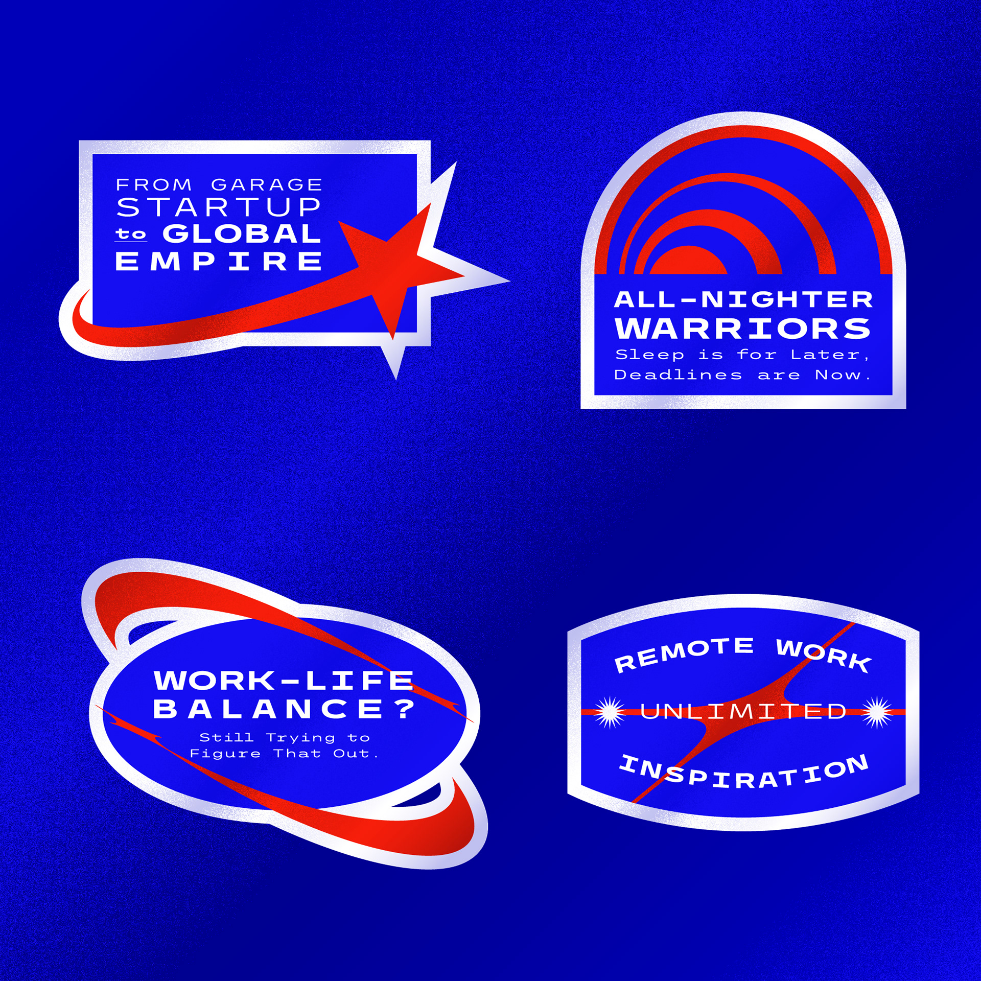 The main challenge was designing corporate materials that feel professional without falling into typical motivational clichés. HR-driven messages needed to sound natural and engaging rather than instructional. The sticker designs also had to feel like authentic tech swag, objects people would genuinely want to use while maintaining visual consistency across very different scales, from wall posters to small merchandise.