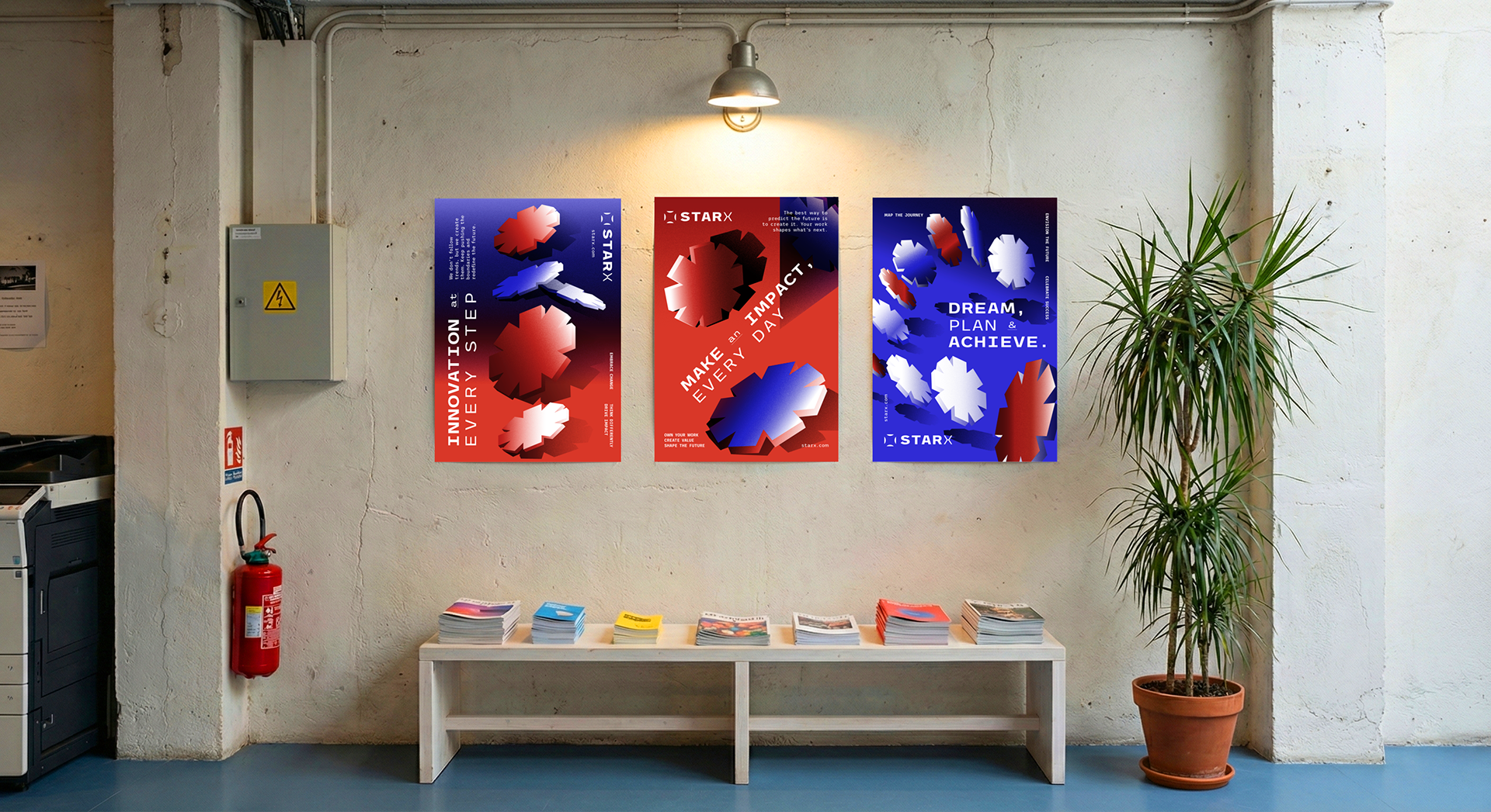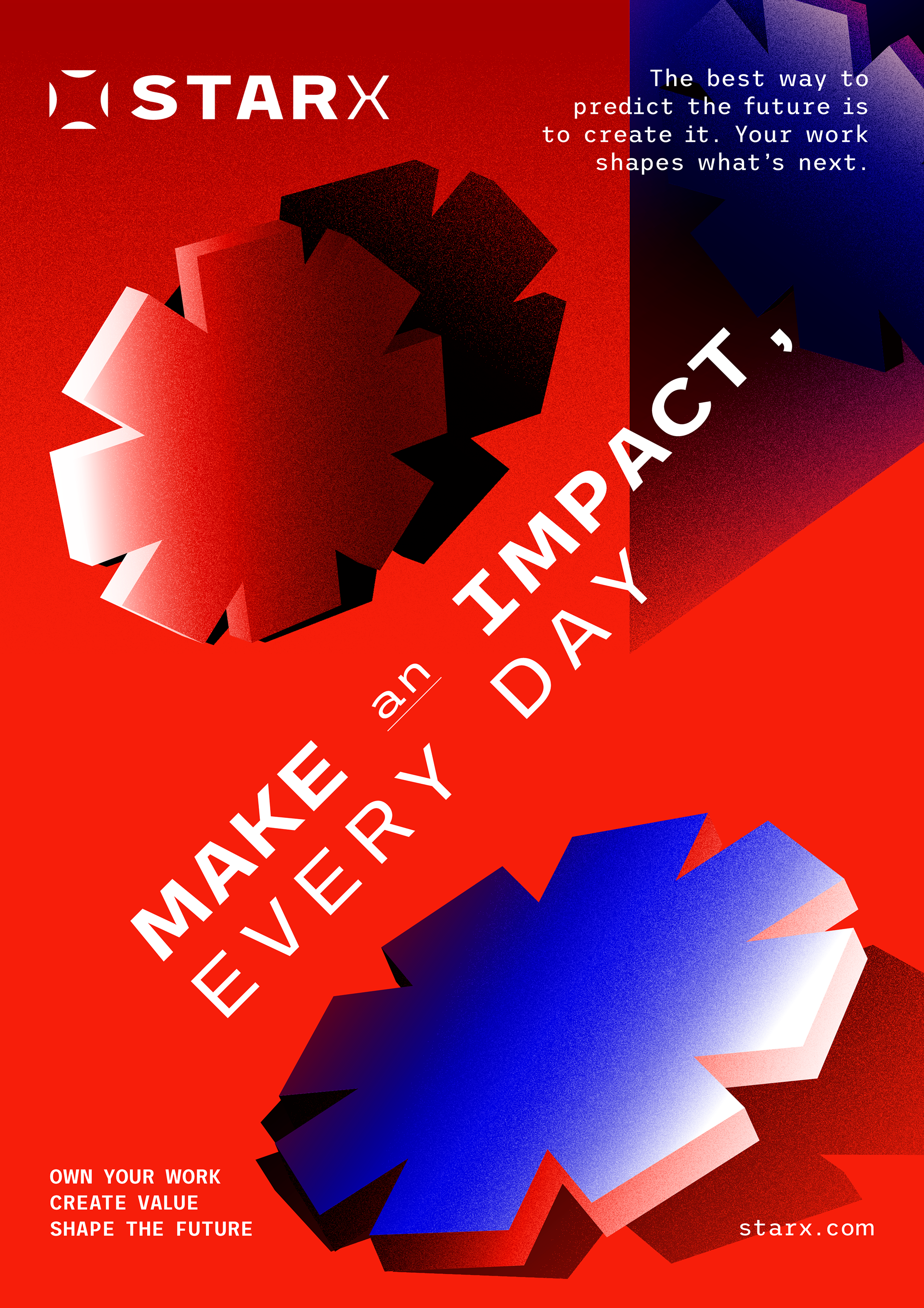 As part of the expansion of Freepik’s Employer Branding category, I created a complete visual identity package for StarX, a fictional tech startup. The project focused on delivering cohesive internal communication assets and merchandise designs, including office posters and sticker sets, to help users portray a modern, energetic, and fun workplace culture.