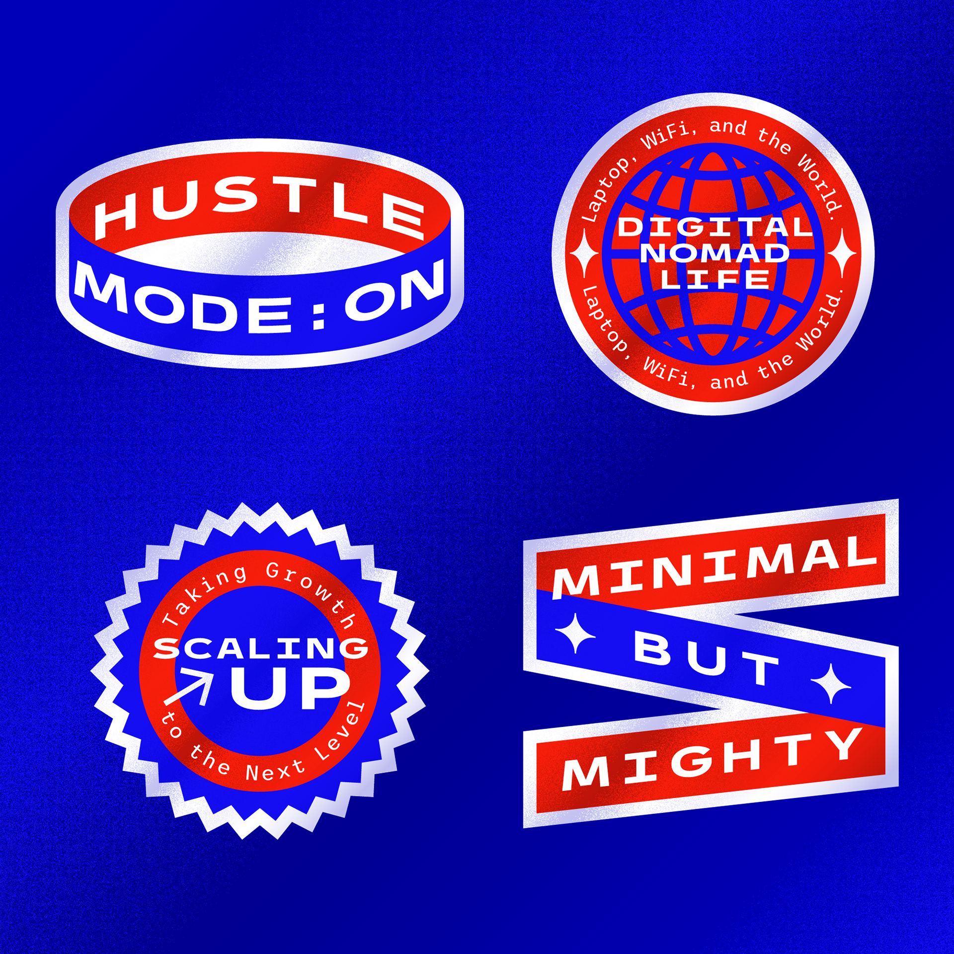 I developed the StarX identity around a “Modern Tech Playground” concept. The posters rely on bold sans-serif typography and minimal, expressive vector illustrations to communicate values quickly and inclusively, supported by a blue-based palette with bright accent colors. For the sticker collection, I shifted toward a streetwear-inspired, internet-savvy aesthetic, using die-cut shapes and themes familiar to tech culture such as coffee, coding, and ideas. Both formats share the same visual language to ensure brand cohesion.